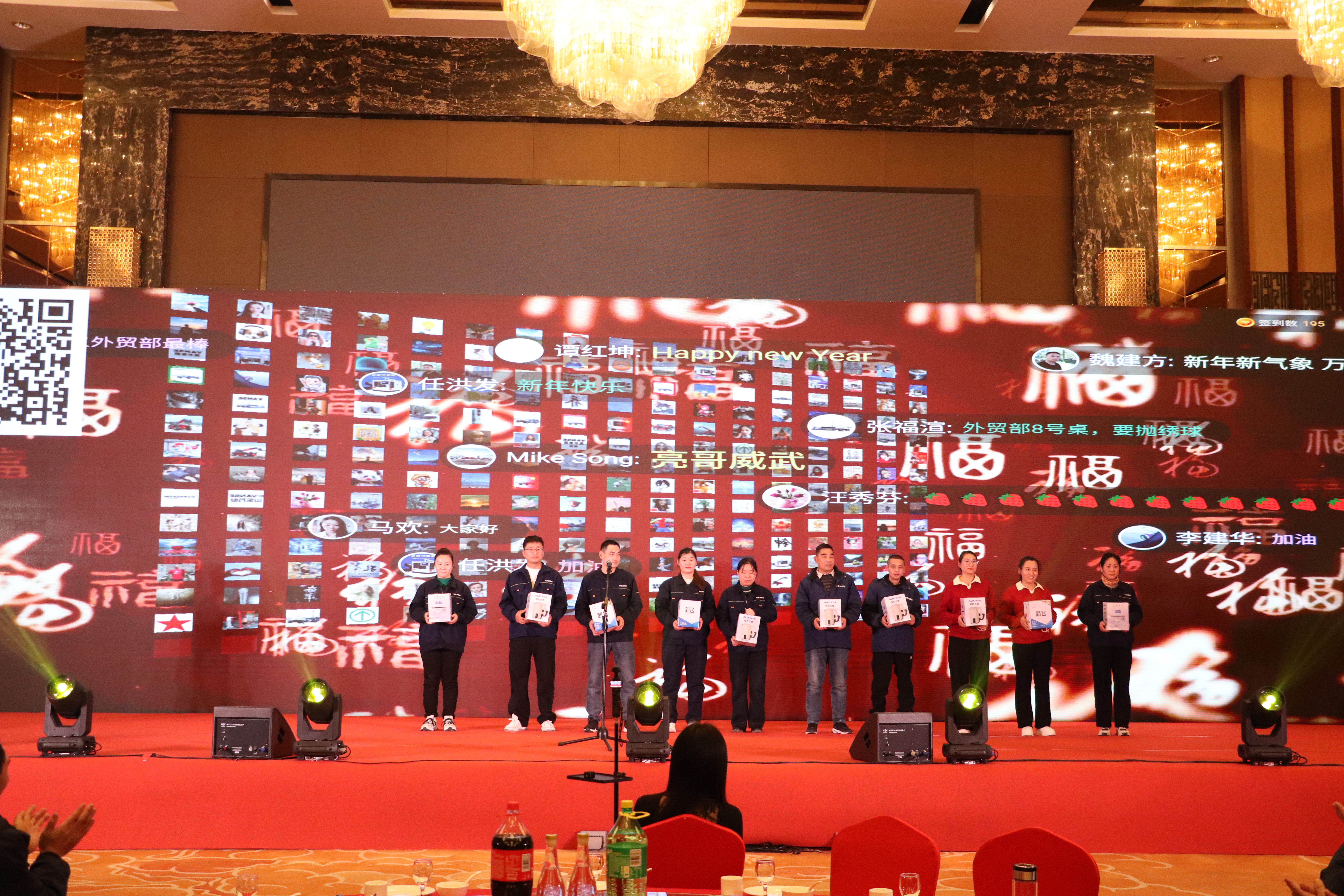 上午8时,年会序幕正式拉开。员工们陆续在签到墙签到,伴随着激昂的进场音乐与循环播放的公司宣传片,现场洋溢着喜庆祥和的氛围。