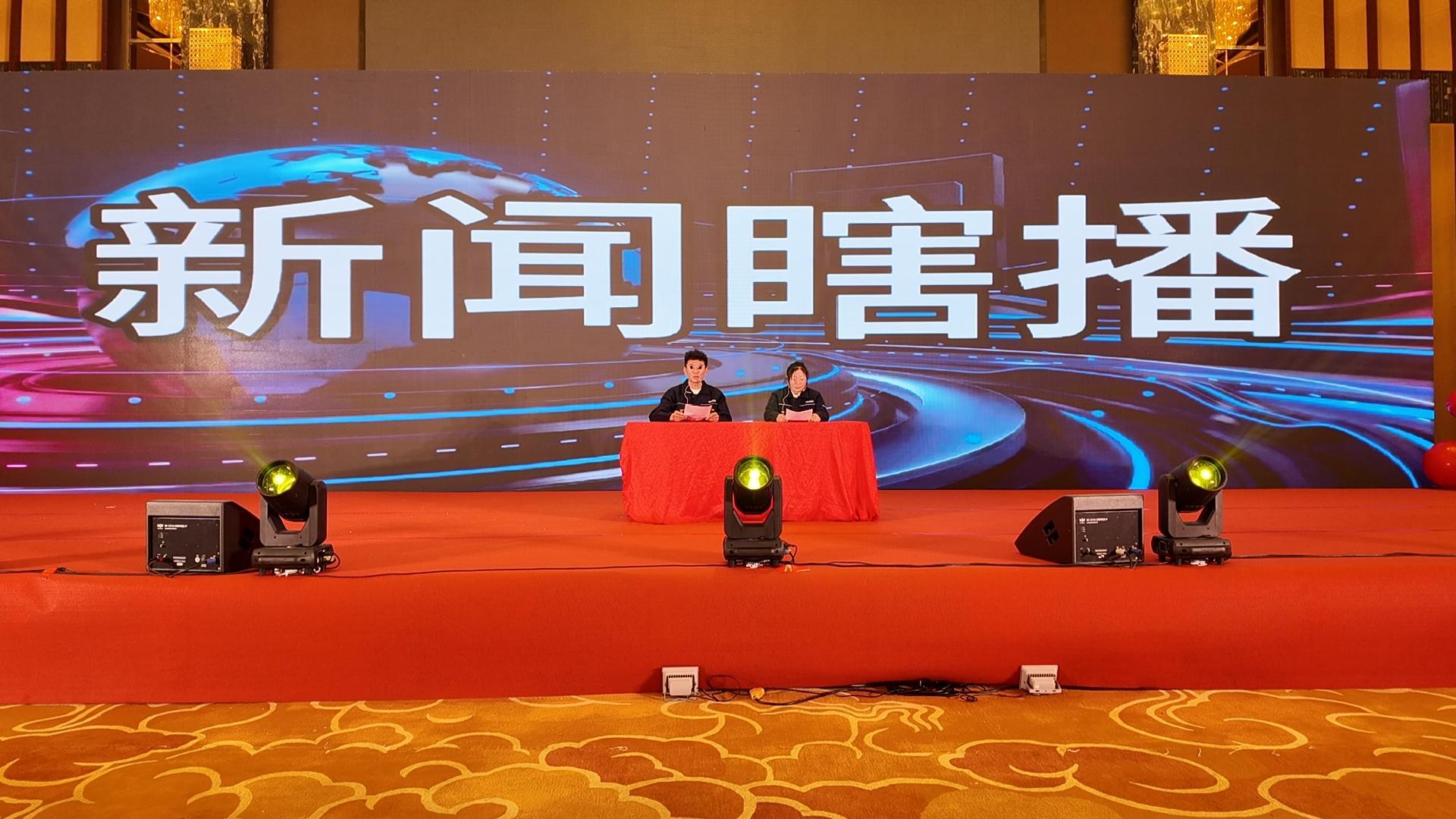8时58分,搞笑开场视频点燃全场热情,随后主持人登台,引领全体员工起立唱国歌,庄严肃穆的氛围中,凝聚着对家国与企业的赤诚之心。